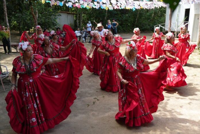 Pelo segundo ano consecutivo no Arraial do Museu, o Grupo Alegria, de Manaus, levou à arena uma apresentação de carimbó. Para Zenilde Gomes, auxiliar de coordenação, o convite para retornar ao evento representa mais que uma performance: é uma celebração.