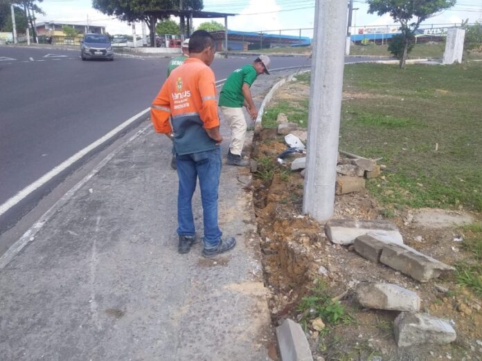 A Prefeitura de Manaus, por meio da Secretaria Municipal de Infraestrutura (Seminf), trabalha na recuperação do meio-fio e sarjeta da rotatória da avenida Noel Nutels, no núcleo 8, bairro Cidade Nova, na zona Norte da cidade.
