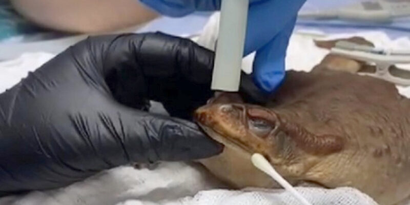 Um sapo-cururu fêmea foi encontrada com a boca colada no Rio Grande do Sul e precisou passar por cirurgia no Hospital Veterinário da Universidade de Passo Fundo (UPF), onde segue internada sob cuidados, em processo de recuperação.