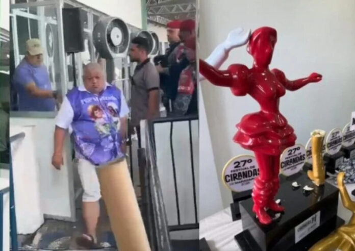 A apuração do 27º Festival de Cirandas de Manacapuru, realizada na tarde desta segunda-feira (1º) no Parque do Ingá, terminou em uma cena lamentável que manchou a festa cultural mais tradicional da cidade. O secretário municipal de Turismo e presidente da Ciranda Flor Matizada, Alexandre Queiroz, quebrou o troféu destinado à sua própria agremiação — vice-campeã — e ainda destruiu a escultura que seria entregue à Ciranda Tradicional, vencedora do festival.