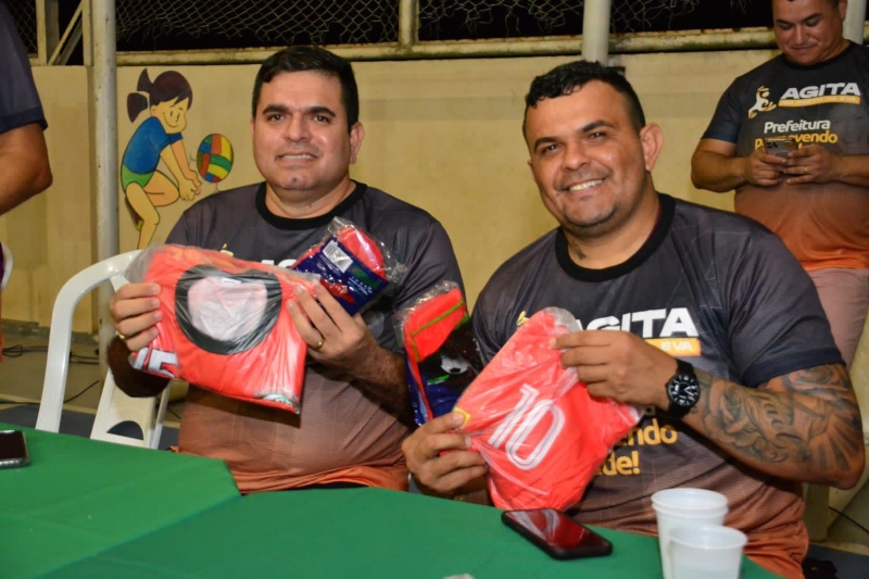 Na noite de terça-feira (12), a Prefeitura de Rio Preto da Eva, por meio da Coordenação de Esporte do município, entregou os uniformes para os 22 jogadores que compõem a Seleção Indígena de Futebol. A equipe recebeu a camisa, o short e o meião para jogo, na cor laranja, que representa Rio Preto. Durante a entrega, no Ginásio da Escola Municipal Menino Jesus, o prefeito Anderson Sousa falou sobre o incentivo ao esporte. “Nós estamos aqui para somar com o esporte. Já entregamos bolas para a realização dos treinos, entregamos os equipamentos para todos os times que vão disputar os jogos distritais, estamos reformando o Estádio Francisco Garcia, o Ginásio Dayson Siqueira Pinto, e até semana que vem devemos entregar mais um ginásio na cidade”, disse Anderson.