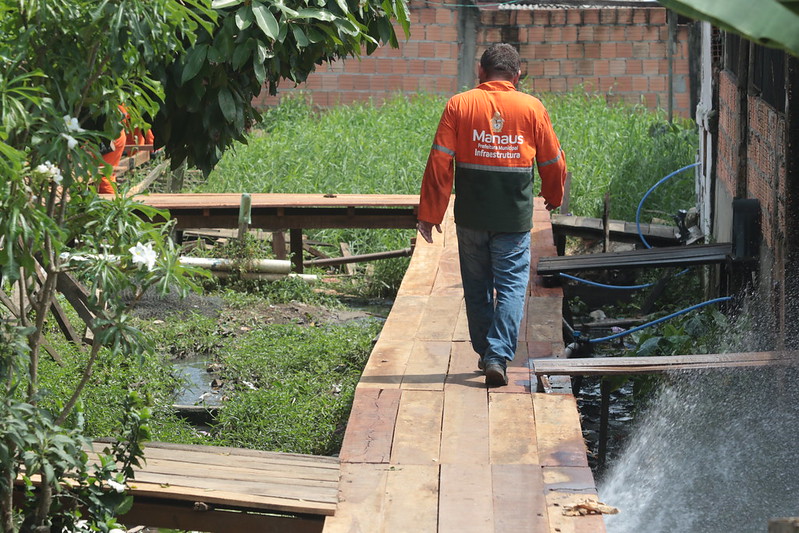 A Prefeitura de Manaus, por meio da Secretaria Municipal de Infraestrutura (Seminf), trabalha, nesta sexta-feira, 26/8, com a implantação de 240 metros de extensão de uma ponte em madeira, na rua Tarumã, beco Tarumã, bairro Praça 14 de Janeiro, na zona Sul da capital.