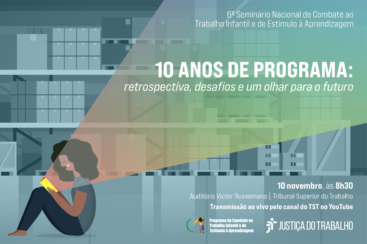 A live da região Nordeste está inserida em um conjunto de cinco lives nacionais preparatório para o 6º Seminário Nacional de Combate ao Trabalho Infantil e de Estímulo à Aprendizagem. Como o tema “10 anos de Programa: retrospectiva, desafios e um olhar para o futuro”, será realizado no dia 10 de novembro, com transmissão ao vivo pelo canal do Youtube do TST. As inscrições estarão abertas em breve.