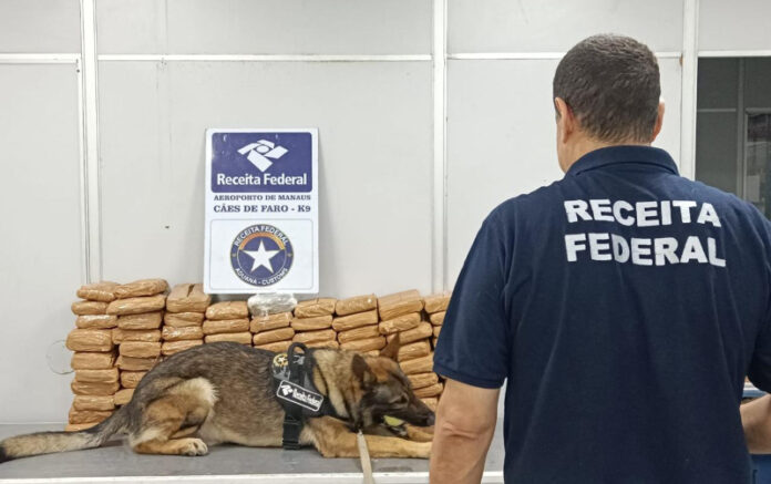Em mais uma ação de combate ao tráfico de drogas e ao contrabando, equipes da Alfândega da Receita Federal no Aeroporto Internacional Eduardo Gomes, em Manaus, apreenderam 97 quilos de skunk, avaliado em aproximadamente R$ 3,4 milhões. A apreensão ocorreu nesta segunda-feira (19) durante uma operação no Terminal de Cargas, com apoio da equipe K9 de cães farejadores.
