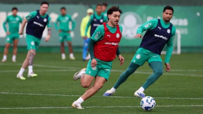 O Palmeiras segue com desfalques na defesa: Bruno Fuchs e Murilo ainda não estão aptos para atuar, e a zaga deve continuar com Gustavo Gómez e Micael.