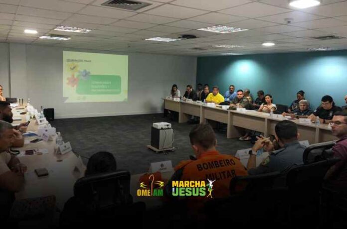 A Ordem dos Ministros Evangélicos do Amazonas, reuniu, nesta terça-feira(06/06), com a Secretaria de Segurança Pública do Amazonas (SSP-AM), por meio da Secretaria Executiva Adjunta de Planejamento e Gestão Integrada (Seagi), na sede do CICC, localizado no bairro de Petrópolis. Com as tratativas finais nas ações que serão realizadas na 29ª edição da Marcha Para Jesus “Deixo-vos a paz, a minha paz vos dou”.