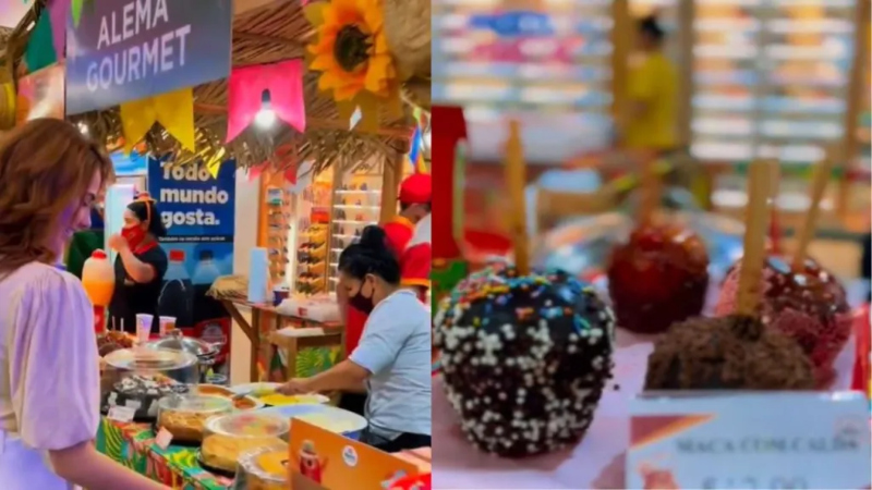 Para entrar no clima junino, o ambiente também recebe elementos temáticos. Barracas com comidas típicas, bandeirinhas coloridas e bonecos gigantes compõem o cenário, que remete a uma cidade do interior, com direito à pracinha, igreja e fogueira cenográfica. “É um ambiente totalmente instagramável”, disse a gerente de marketing do Sumaúma, Laura Palhares.