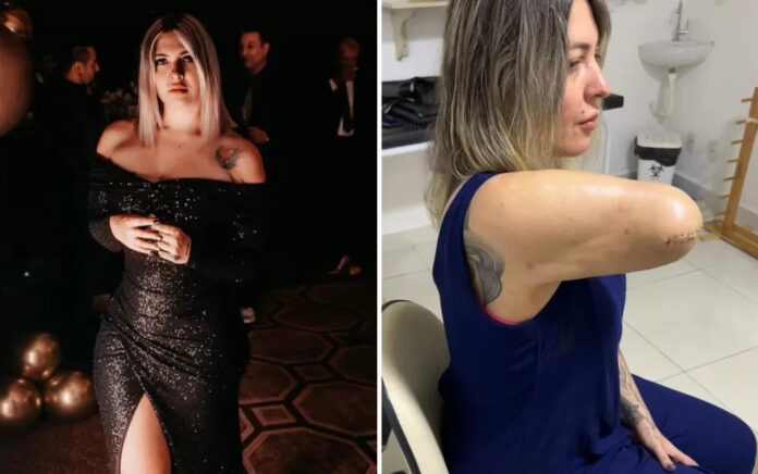 Goiânia – O sonho da cirurgia plástica acabou em pesadelo para a tatuadora goiana Camila Gama, 41 anos. A mulher, que vivia nos Estados Unidos há 8 anos, desembarcou em Goiânia, onde nasceu e foi criada, para fazer um procedimento estético, mas teve o braço direito amputado, acima do cotovelo, após complicações.