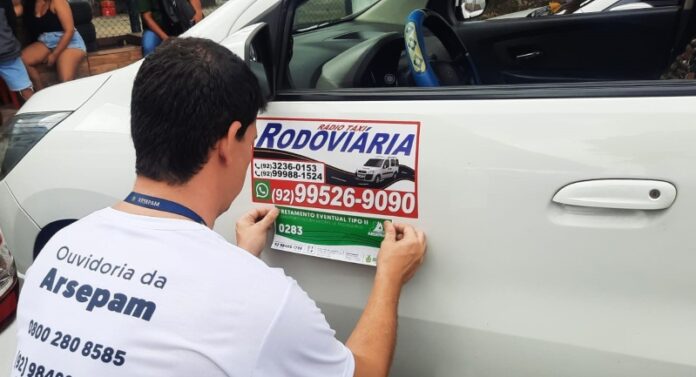 Ao todo, 10 carros da Rodoviária Rádio Táxi e 22 da Rádio Táxi Figueiredo foram adesivados. Fiscais da Arsepam foram até as garagens das empresas em Manaus para efetuar a vistoria e afixação dos adesivos.