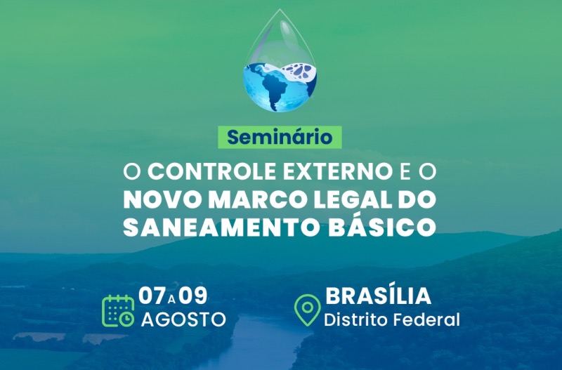 No período de 07 a 09 de agosto deste ano, no Auditório do Edifício ION, sede do Instituto Rui Barbosa (IRB), em Brasília-DF, será realizado o seminário “O Controle Externo e o Novo Marco Legal do Saneamento Básico”.