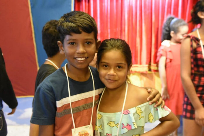 Entre as crianças, descendentes indígenas de uma associação que reúne 12 etnias, localizada na Comunidade do Livramento. Laís Martins, 13, e Ezequiel Levi, 12, aprovaram a programação deste domingo.
