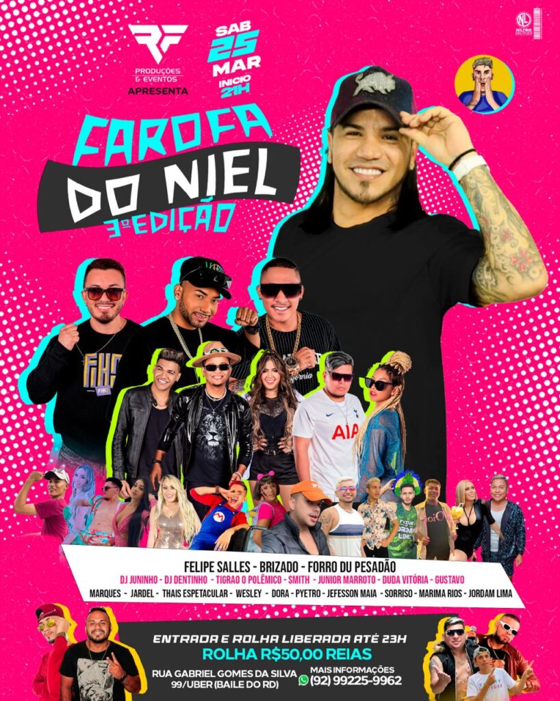 A terceira edição da ‘Farofa do Niel’ acontece neste próximo sábado (25), o evento inicia ás 21h, na rua Gabriel Gomes da Silva – Col. Santo Antônio.