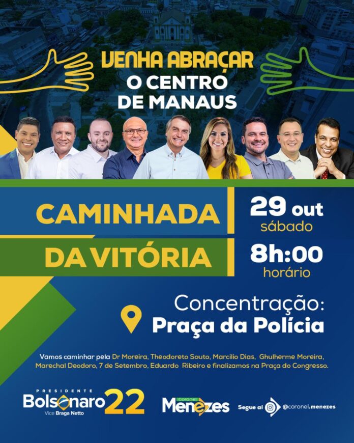 A concentração será a partir das 8h, na Praça da Polícia Heliodoro Balbi, em frente ao Colégio Amazonense Dom Pedro II, com destino a Praça do Congresso. O evento vai marcar o último ato em apoio à campanha de reeleição do presidente Jair Bolsonaro (PL) no Amazonas.