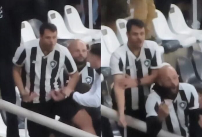 No vídeo gravado da arquibancada do Nilton Santos pelo jornalista Tossiro Neto, é possível ver o homem imitando um macaco e apontando para a própria pele. Veja: