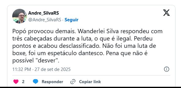 Neste sábado (27), Acelino “Popó” de Freitas derrotou Wanderlei Silva na luta principal da segunda edição do Spaten Fight Night. No entanto, o confronto que foi decidido por decisão da arbitragem, foi marcado por cena lamentáveis entre as equipes dos lutadores. Nas redes sociais, os torcedores reagiram ao combate das lendas do Boxe e MMA brasileiro.