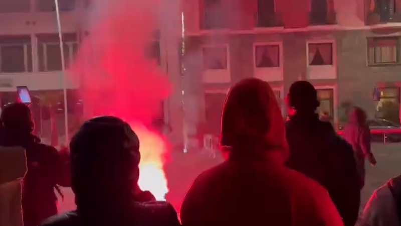 De acordo com as imagens divulgadas nas redes sociais, os napolitanos entoaram cânticos, acenderam sinalizadores e até soltaram fogos de artifício nas proximidades do local.