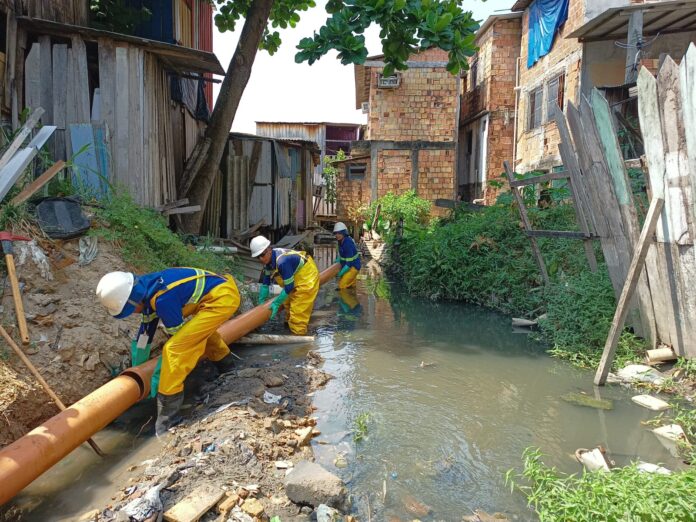 Um projeto inédito, que está sendo implantado em Manaus, vai garantir que moradores de palafitas da cidade sejam conectados à rede de esgotamento sanitário pela primeira vez. A ação vai permitir que todos os efluentes de uma região vulnerável cheguem até uma estação e recebam o tratamento adequado, evitando que o esgoto seja despejado diretamente na natureza, colaborando assim, para a recuperação ambiental da região.