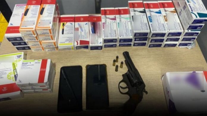 Dos suspeitos, dois foram presos dentro do veículo. Já o outro, tentou fugir, mas sem sucesso. Os agentes encontraram, dentro do carro, as canetas emagrecedoras e a arma usada no assalto. Em seguida, os medicamentos foram devolvidos à farmácia.