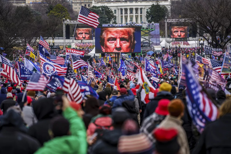 Comício "Pare o Roubo" em frente à Casa Branca em Washington, horas antes de uma multidão pró-Trump invadir o Capitólio Mark Peterson/The New York Times