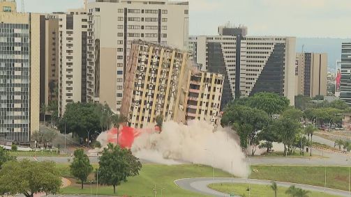 Torre Palace, primeiro hotel de luxo de Brasília, foi implodido na manhã deste domingo (25). A operação, coordenada pela Secretaria de Segurança Pública (SSP-DF) e pela Defesa Civil, ocorreu por volta de 10h no Setor Hoteleiro Norte. O prédio de 14 andares estava desativado desde 2013 devido a disputas judiciais de herança entre os familiares do antigo proprietário.