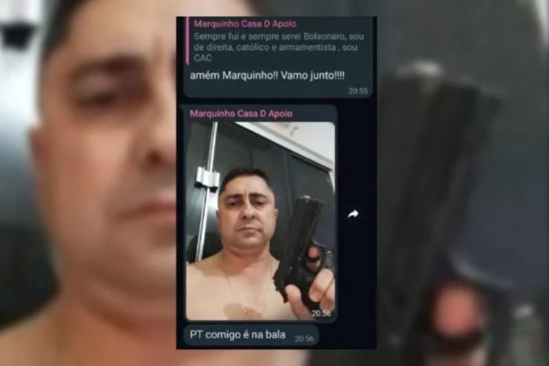 Um vereador da cidade de Quirinópolis, município do estado de Goiás, chamou atenção por uma ameaça feita em um grupo de WhatsApp. Marcos Túlio Barroso, conhecido como Marquinho da Casa de Apoio (PSB), publicou uma foto na qual aparece segurando uma arma de fogo e, na legenda, diz: “PT comigo é na bala”.