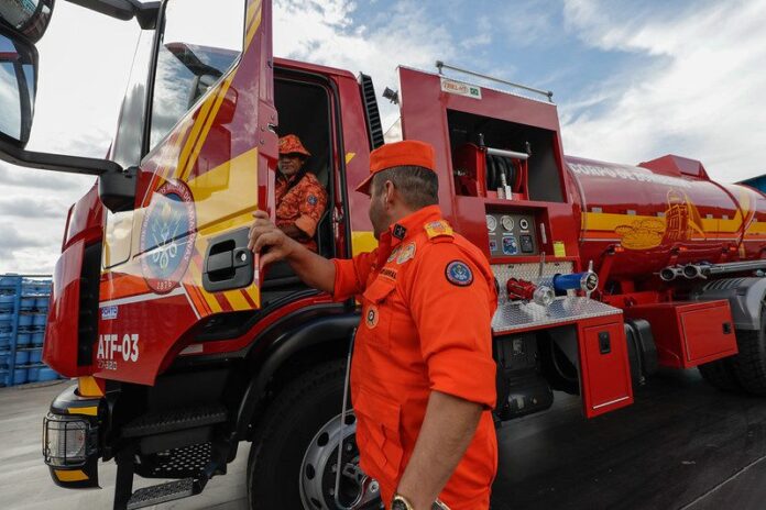 Além do caminhão ABF, também estão sendo enviados uma picape equipada com kit para combate a incêndios florestais, pulverizadores, motosserras, mangueiras, esguichos e bombas costais, reforçando a capacidade operacional da equipe.
