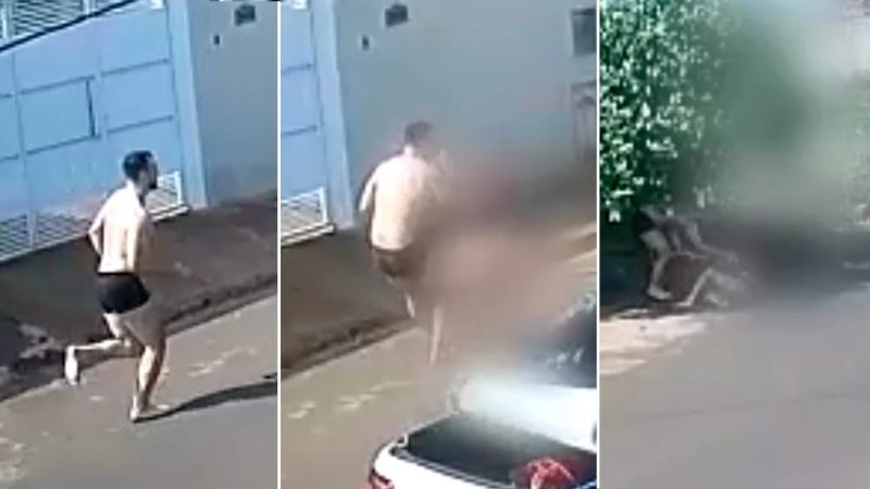 Nas imagens, a mulher aparece correndo pela rua e consegue parar um veículo. Em seguida, o homem surge de cueca e persegue a esposa, arrastando ela pelo asfalto. O advogado só para quando passageiros de um segundo carro resgatam a vítima.