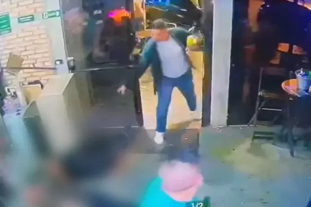 Pelas imagens de uma câmera de monitoramento é possível ver o momento em que o segurança empurra Leony para fora do bar e o cliente então saca uma pistola e atira várias vezes contra o segurança.