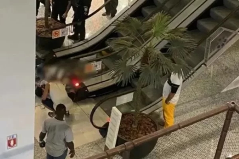 Imagens das câmeras de segurança do Taquara Plaza Shopping, na Zona Oeste do Rio de Janeiro, captaram os momentos anteriores à morte de um homem no local. O vídeo mostra a vítima sendo encurralada pelos criminosos em uma escada rolante, no início da noite dessa sexta-feira (28/4).