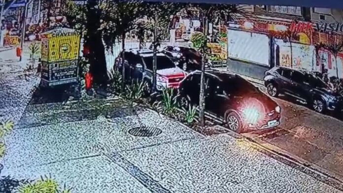 Imagens de câmeras de segurança da rua registraram o homem que efetuou os disparos correndo pela rua atrás do ladrão. Veja abaixo:
