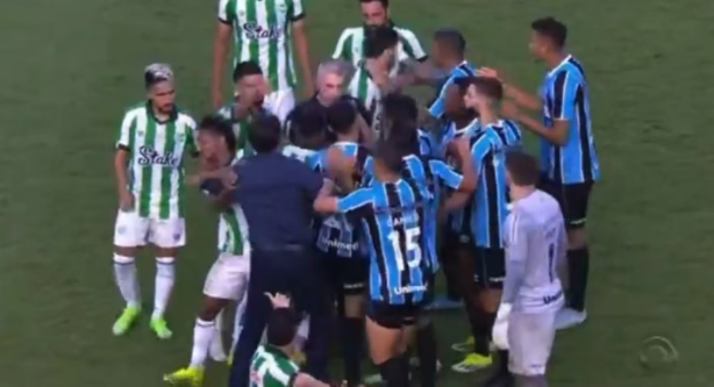 Cenas lamentáveis tomaram de conta do duelo entre Grêmio e Juventude pela semifinal do Campeonato Gaúcho. O técnico do Imortal, Gustavo Quinteros, invadiu o campo e agrediu um jogador do Juventude após o gol de Gustavo Martins no apagar das luzes.