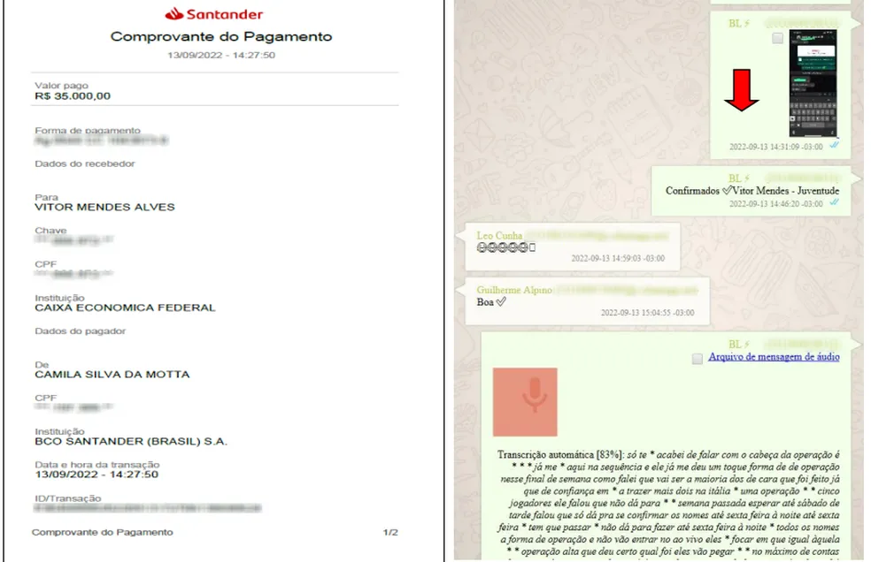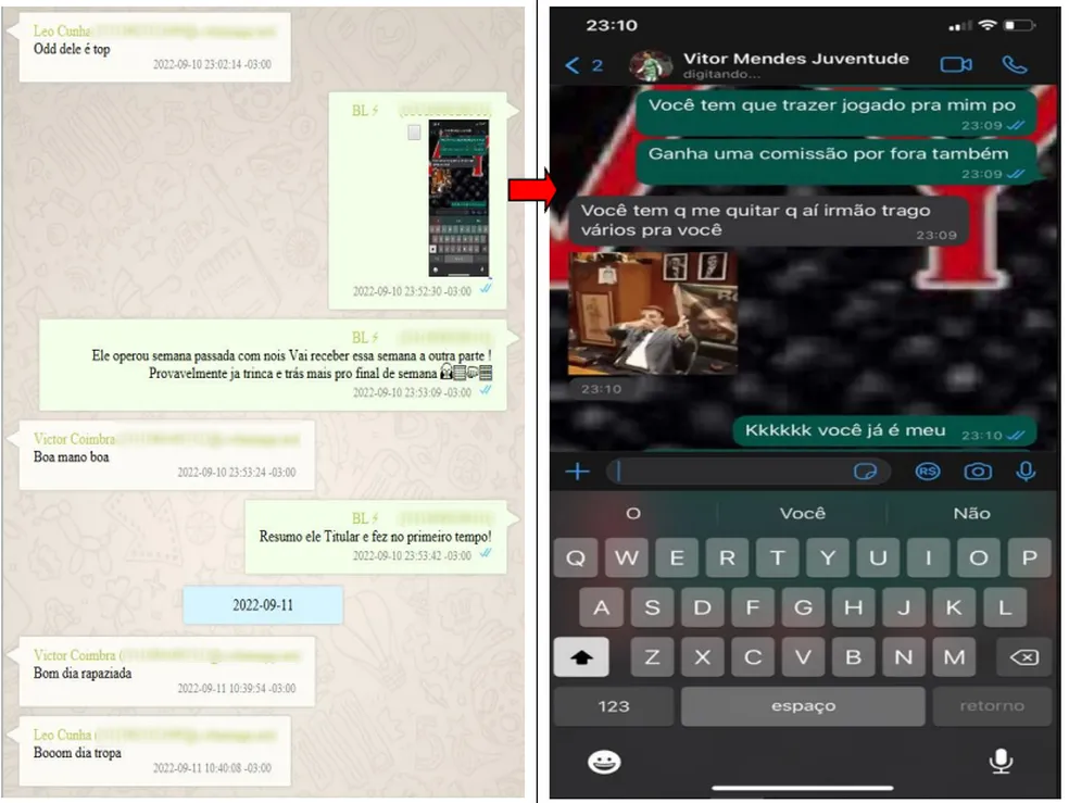 Vitor Mendes aparece em conversas com os apostadores indicando uma relação próxima com o grupo. Em um áudio enviado por Bruno Lopez, apontado como o chefe da quadrilha pelo MPGO, a seus comparsas, ele afirma: “Ele é jogador nosso”. Ele recebeu valores em duas oportunidades para receber cartões amarelos em jogos do Juventude no Brasileirão de 2022, e se ofereceu para tomar um terceiro cartão, mas os apostadores optaram por não usá-lo. Além disso, ele também prometeu “arrumar mais dois” atletas para o esquema.