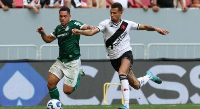 Solta a carta! Na tarde deste domingo (4), o Palmeiras venceu o Vasco, em jogo disputado no Mané Garrincha, em Brasília, pela sétima rodada do Campeonato Brasileiro. O único gol da vitória palestrina foi anotado por Vitor Roque, que fez seu primeiro gol pelo clube.