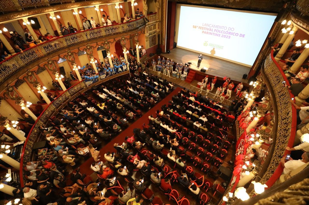 O governador Wilson Lima lançou, nesta sexta-feira (10/03), o 56º Festival Folclórico de Parintins, que em 2023 será pautado pelos pilares da Cultura, do Turismo e da Sustentabilidade. Em cerimônia no Teatro Amazonas, Wilson Lima também anunciou o repasse de R$ 10 milhões para a realização da festa, sendo R$ 5 milhões para os bois-bumbás Caprichoso e Garantido.