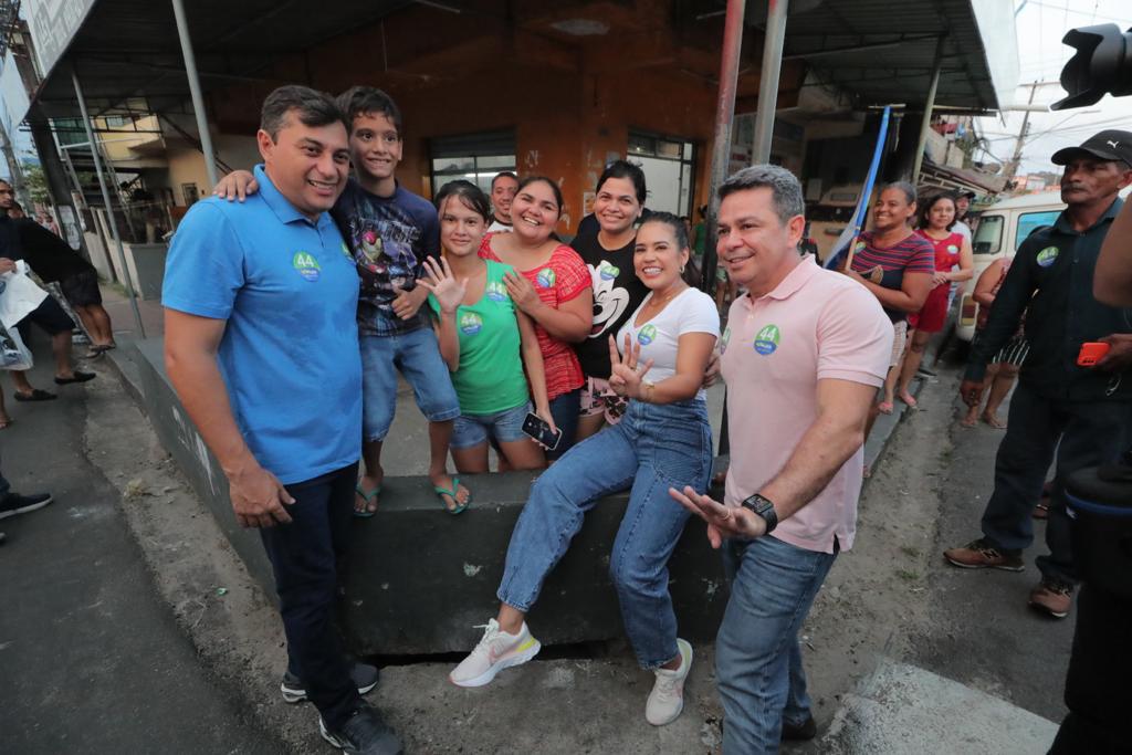 Wilson percorreu as vias do Coroado com a primeira-dama, Taiana Lima; e com o candidato a vice-governador, Tadeu de Souza.